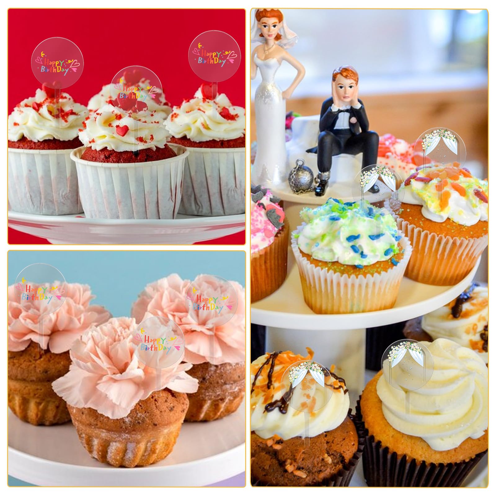 - Clear Design: these acrylic cupcake toppers are blank on the surfaces, you can easily DIY things as you want, you can paint, doodle and write messages on these blank cupcake toppers, personalize your nice wishes and blessings, make your cake more attractive and meaningful