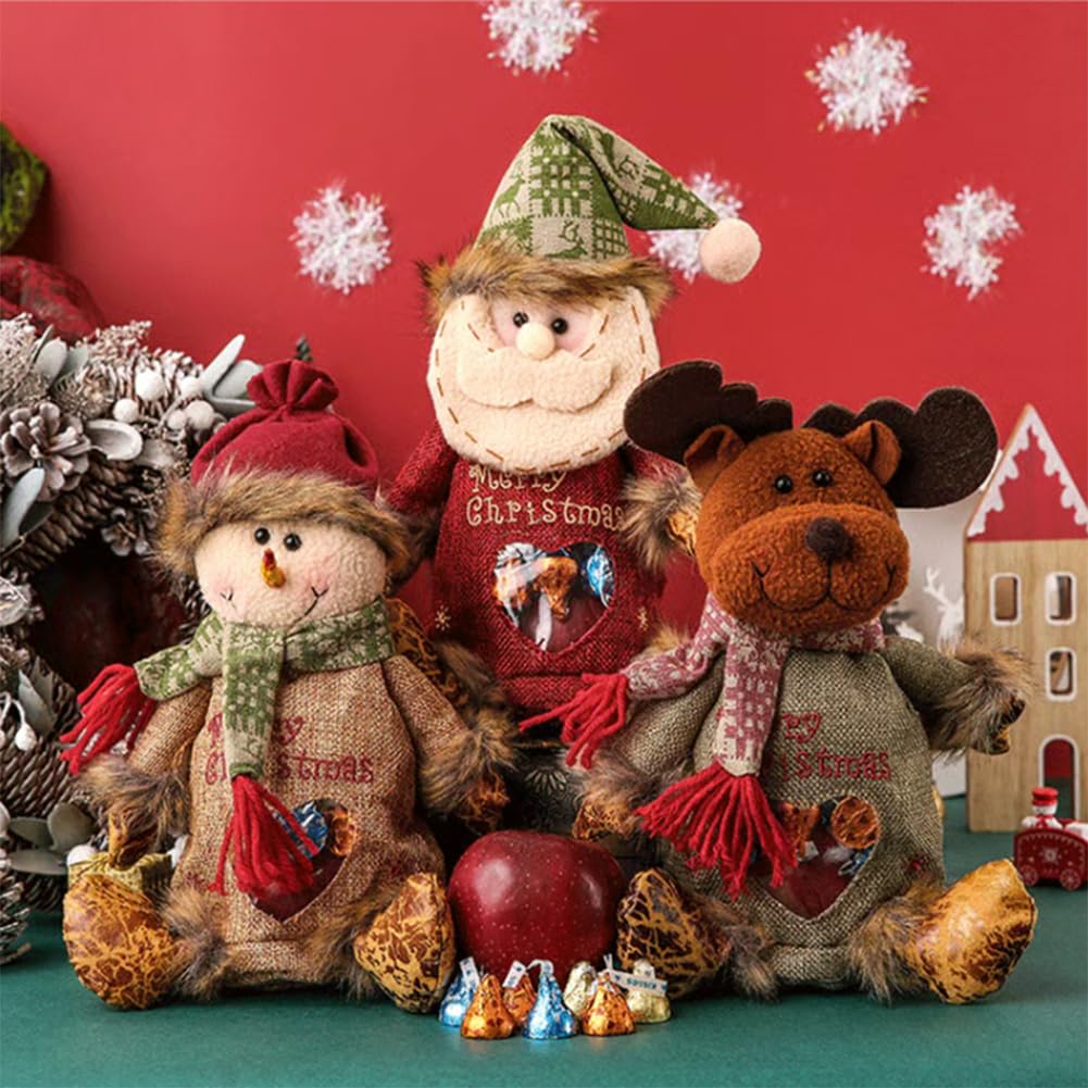2025 New Christmas Gift Bags Zipper Design, Christmas Gift Doll Bags, Large Christma Gift Bags Bulk, Reusable Fabric Bags with Drawstring for Candy, For Candy, Apples (6PC)