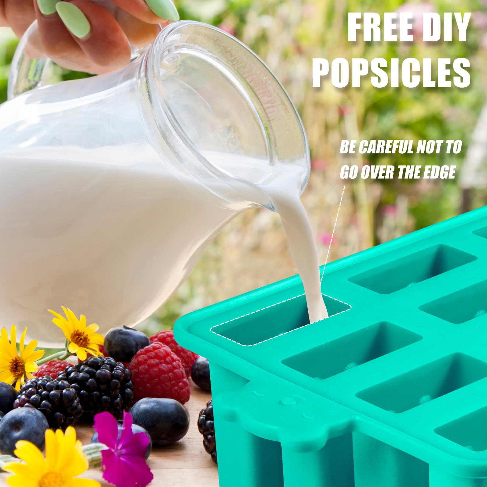 - 【Multi-USE Flexible Silicone Tray Popsicle Moulds】Flexible ice mold is leak free and won't creak and break like the plastic ice cube tray.Create frozen pops using any combination of juices, purees, yogurt, gelatin, fruit, ice cream, pudding, jams and jellies and more