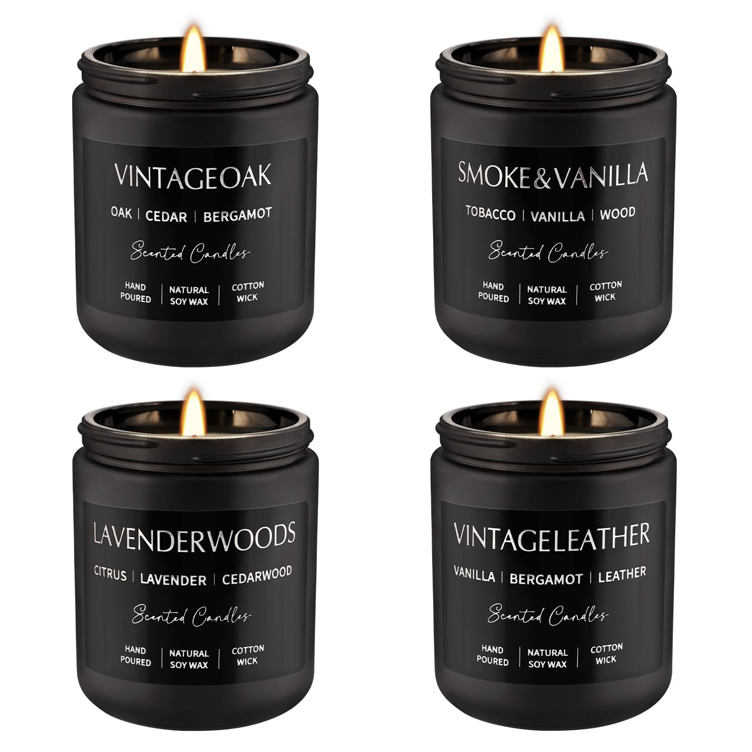 Scented Candles Gift Set - 4 Pack (7oz Each) Soy Wax Aromatherapy Candles with Essential Oils, Smokeless - Leather & Smoke, Vanilla Oakmoss, Lavender - Relaxing Fragrance for Home, Office, Yoga