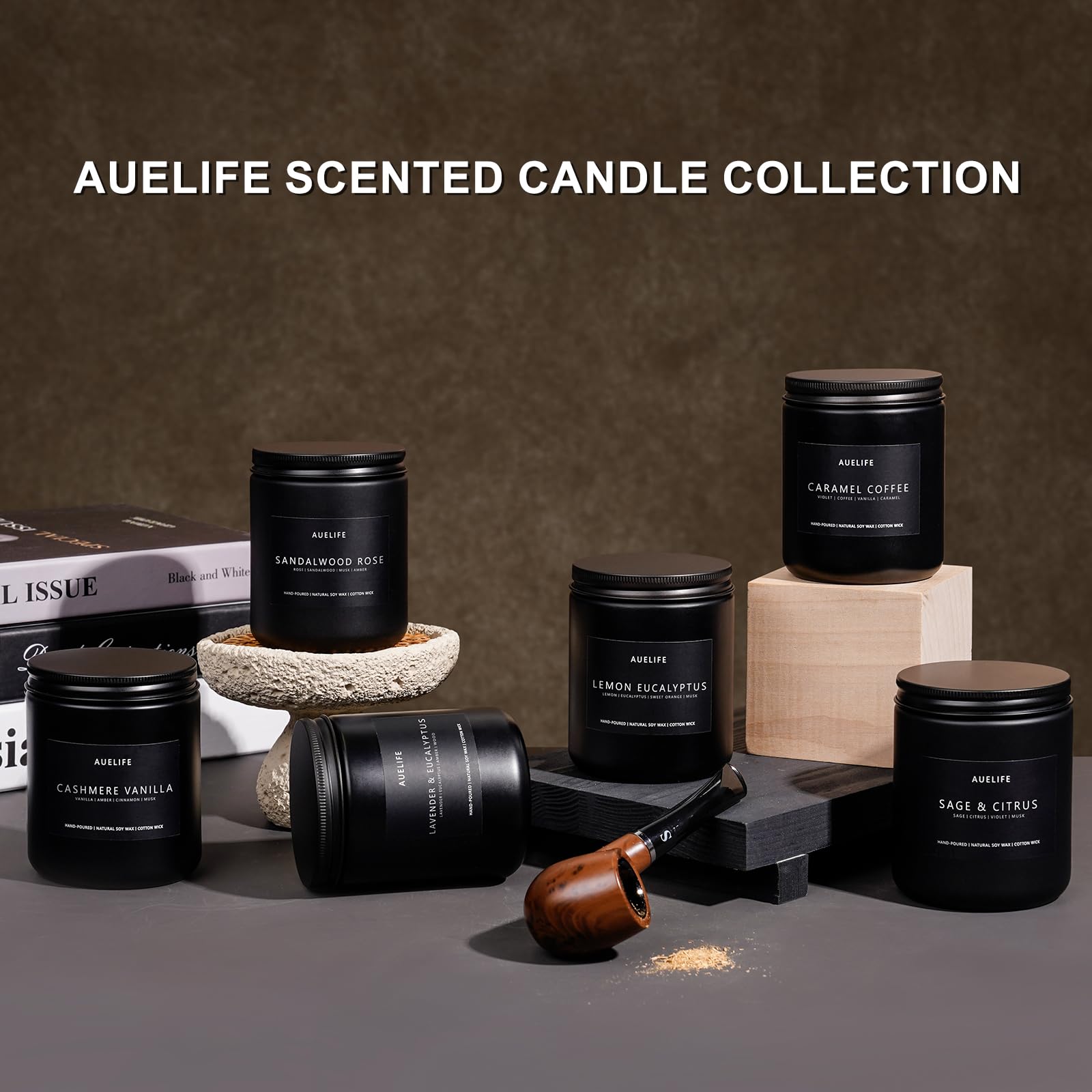 - The Aesthetics of Men Candles -- The men candle’s aesthetic matches its bold scent. The candle housed in sleek, masculine containers -matte black jar, these men candles make a stylish statement in any space. The rugged yet refined look fits well in a study, a living room, or a man cave. Even if you don’t drink whiskey or smoke cigars, the stylish design and alluring fragrance will undoubtedly enhance the décor and atmosphere of any room.