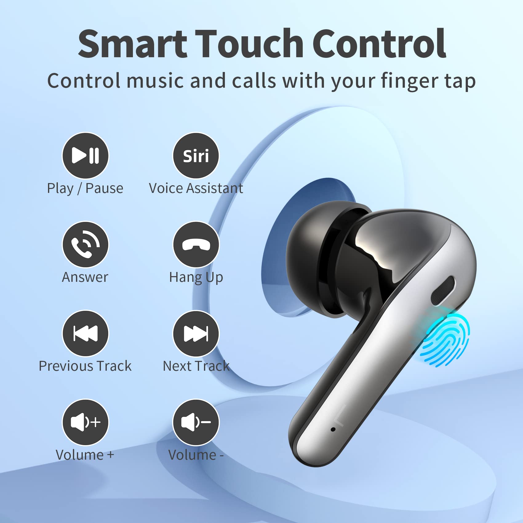 - One-Step Pairing and Easy Touch Control: TAGRY X08 bluetooth earphones adopts hall switch. After first connection, these wireless earphones will connect with your device once you open the charging case, which is faster and more convenient. During using, you can touch either earbud to control the phone, such as the music switch, volume adjustment, phone calls, voice assistant, etc. No need to adjust through your mobile phones